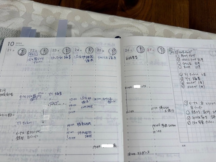 それまでは、タスクはToDoメモに書いて机に貼っていたのですが、手帳にその週のタスクを書き出して、対応できたかをチェックできるのはいいですね。