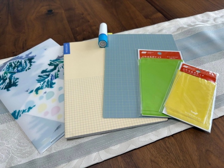 ほぼ日手帳の下敷きやメモ帳、クリアファイルは「カズンサイズ」を選ぶと、タイムコーディネート手帳にもぴったりなんです。手帳に貼って使うポケットシートも便利です。